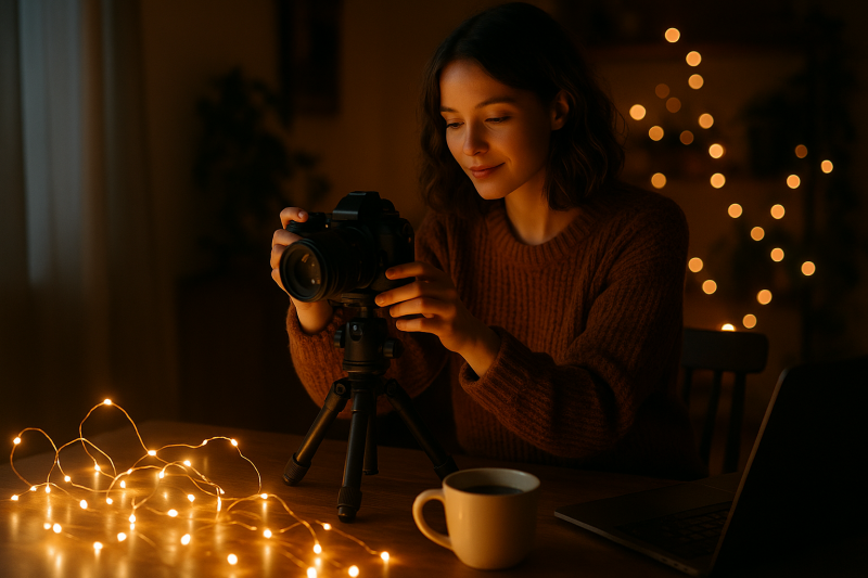 Создание эффекта боке. Это главный козырь гирлянд в фотографии. Размытые огоньки на заднем плане превращаются в мягкие, переливающиеся кружки света, которые добавляют кадру объем, романтику и сказочную атмосферу. Никакой другой источник света не способен так легко и эффектно создать это волшебное размытие, или «боке», которое сразу приковывает взгляд зрителя.