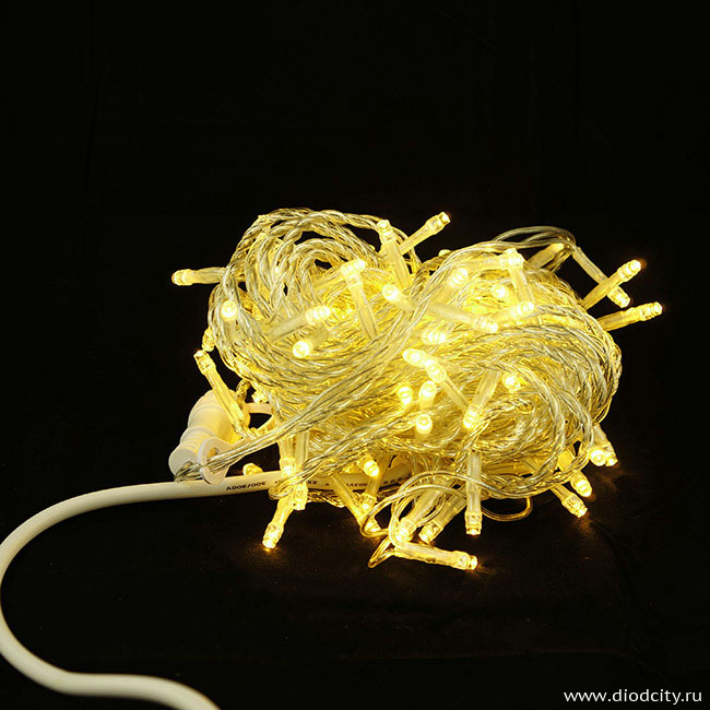 —Гирлянда-нить, мерцающая, 20м, провод прозрачный, цвет жёлтый