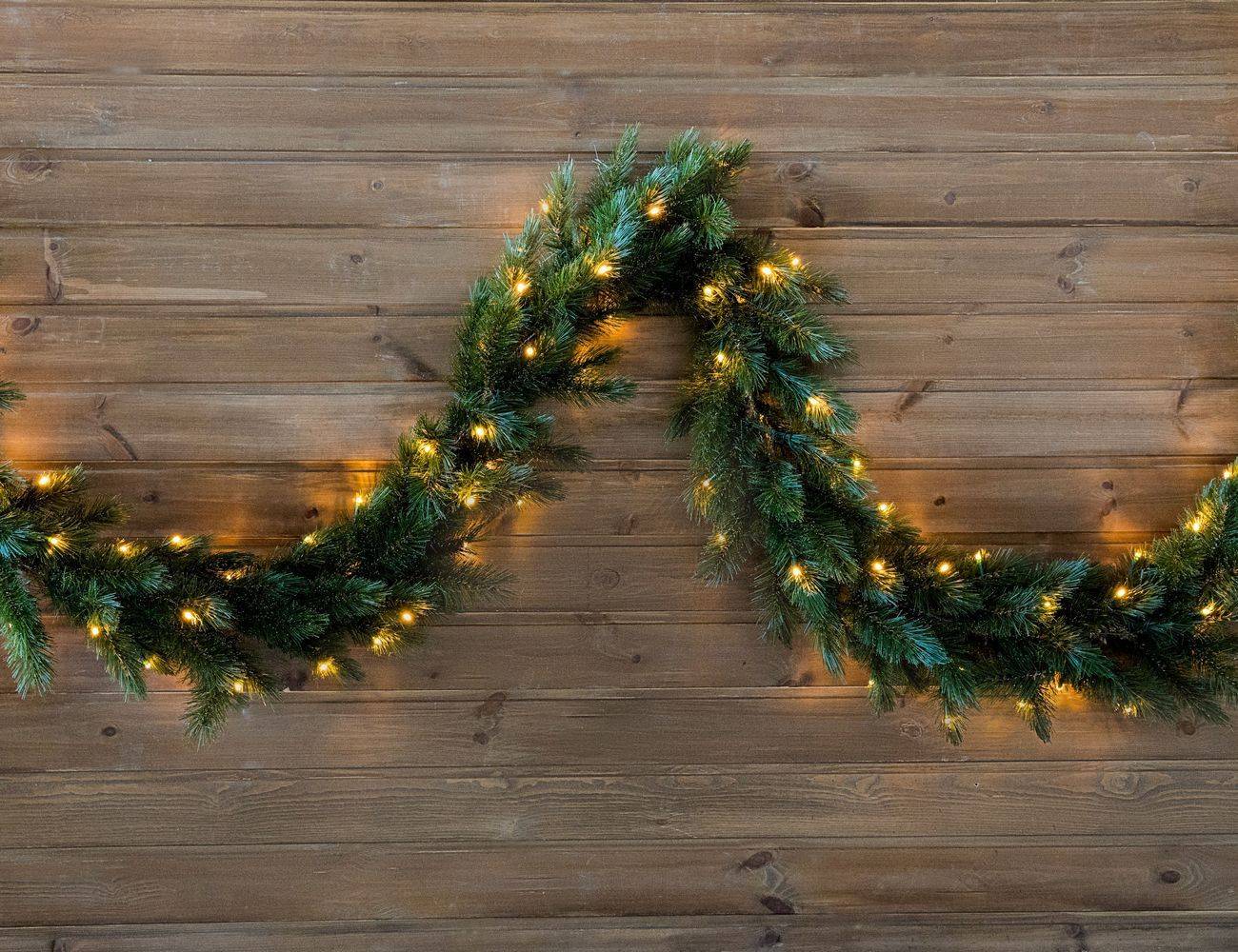 —Хвойная гирлянда ЛЕСНАЯ КРАСАВИЦА, хвоя-леска, 96 теплых белых светодиодов, 270х33 см