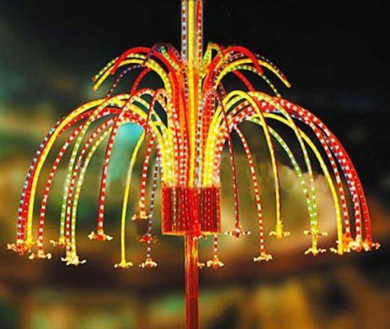 Являясь декоративным осветительным устройством, фейерверк на светодиодах имеет основные компоненты – вертикальная опора, световые ленты и управляемый контроллер. Последний из перечисленных элементов, собственно, и создаёт эффектность освещения электрическим фейерверком.