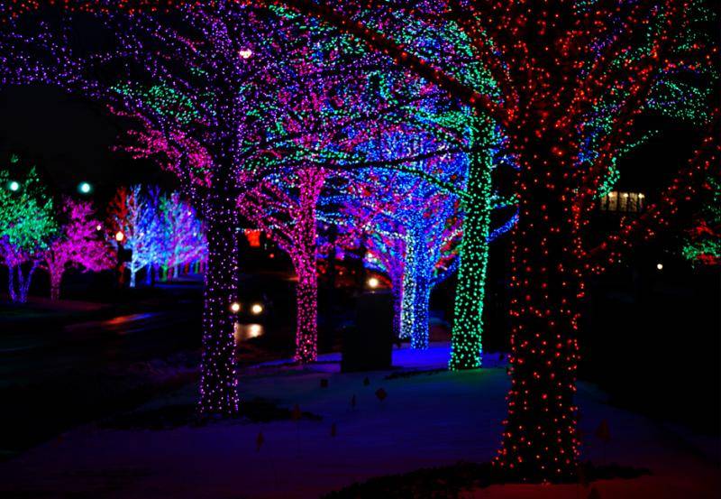 отдельных ветвей большого дерева. Гирлянды дюралайт имеют довольно широкую