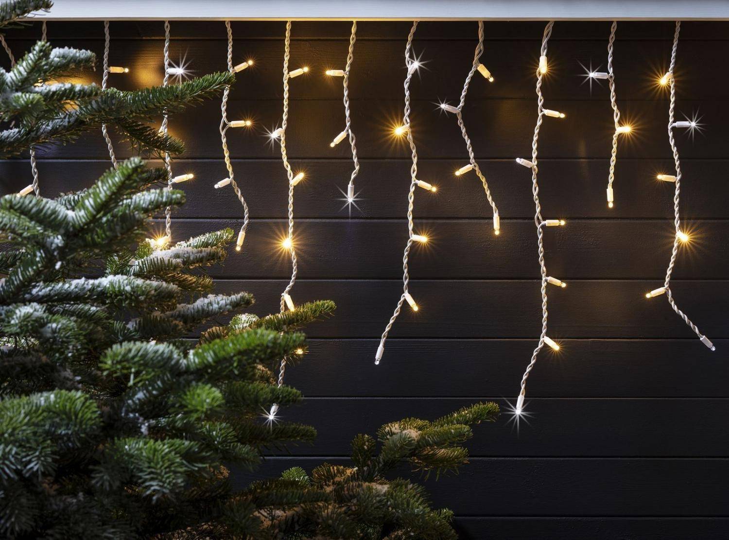 Идеальным вариантом для украшения фасада дома или создания новогоднего атмосферного настроения на улице будет светодиодная гирлянда бахрома мерцающая специально разработанная для использования на улице. Она выдерживает неблагоприятные погодные условия и подарит вам яркий, праздничный вид.