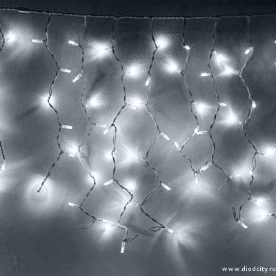 Светодиодная мерцающая белая гирлянда «Бахрома» с габаритами 3х0,7 метра – идеальная декоративная подсветка для витрин, кафе, ресторанов, фасадов частных домов. Лёгкое мерцание светодиодного устройства обеспечивается 180 диодами белого цвета, расположенными на нитях по 0,3,0,5 и 0,7 метра.