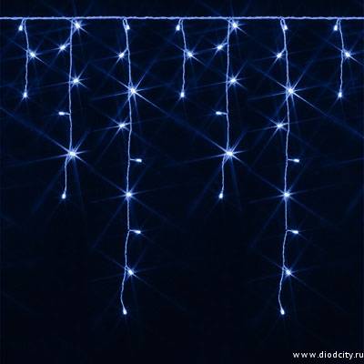 Эффектный декоративный светотехнический прибор, гирлянда – бахрома функционирует в режиме фиксинг, диоды постоянного свечения синего цвета придают освещаемому объекту нарядный праздничный вид. Изделие разрабатывалось для освещения экстерьеров, поэтому имеет высокий класс защиты.