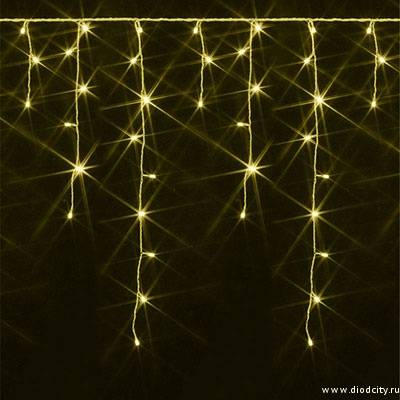 Эффектный декоративный светотехнический прибор, гирлянда – бахрома функционирует в режиме фиксинг, диоды постоянного свечения жёлтого цвета придают освещаемому объекту нарядный праздничный вид. Изделие разрабатывалось для освещения экстерьеров, поэтому имеет высокий класс защиты.