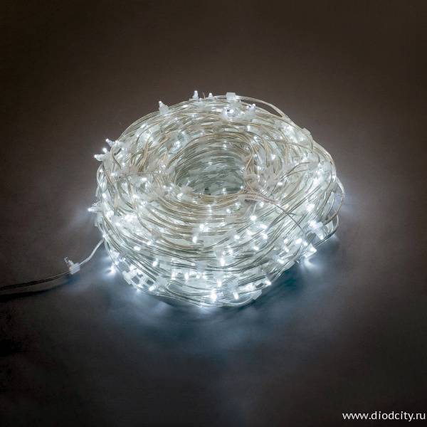 Креативный вид придомовому участку, ландшафтному дизайну, площадке перед рестораном, аллее бульвара придадут LED гирлянды на деревья «Клип Лайт» мерцающий белый. Декоративный осветительный прибор представляет собой прозрачный провод длиной 100 метров, на котором расположены диоды через каждые 15 см. Мерцание обеспечивают каждая 6 лампочка.