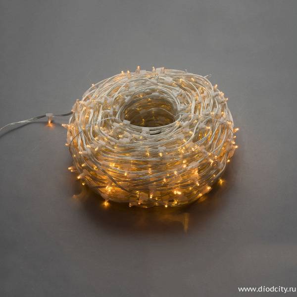Креативный вид придомовому участку, ландшафтному дизайну, площадке перед рестораном, аллее бульвара придадут LED гирлянды на деревья «Клип Лайт» мерцающий желтый. Декоративный осветительный прибор представляет собой прозрачный провод длиной 100 метров, на котором расположены диоды через каждые 15 см. Мерцание обеспечивают каждая 6 лампочка.