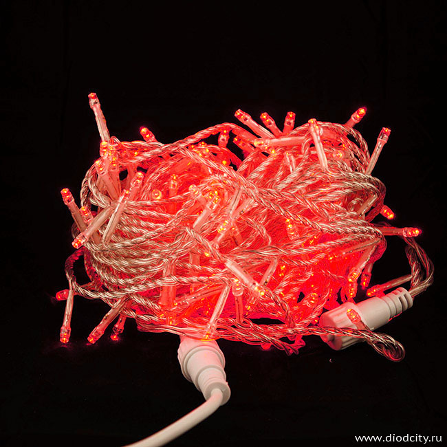 —Гирлянда-нить, мерцающая, 20м, провод прозрачный, цвет красный