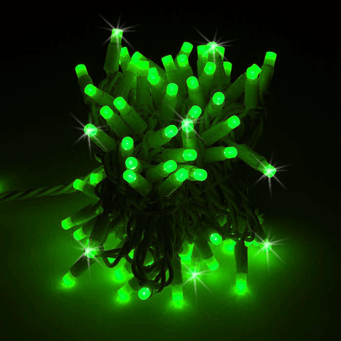 —Гирлянда-нить Стринг Лайт, мерцающая, 10м, провод каучук,цвет зеленый