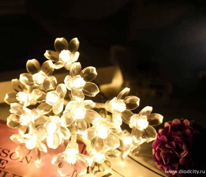 —Гирлянда " Цветки сакуры" , длина 10 м, цвет теплый белый
