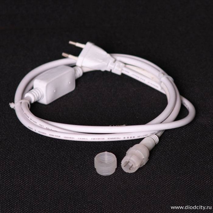 В нашем интернет-магазине декоративного освещения — DiodCity вы можете приобрести комплект подключения по доступной цене: 320 руб. Вы можете заказать понравившийся цвет дюралайта на нашем сайте или по телефону +7 (499) 398-07-66. Также, мы осуществляем доставку по Москве и в регионы России.В  комплект  входит: 1. Электрический шнур белого цвета, длина 183 см. 2. Конвертор 3. Соединяющий коннектор 4. Заглушка