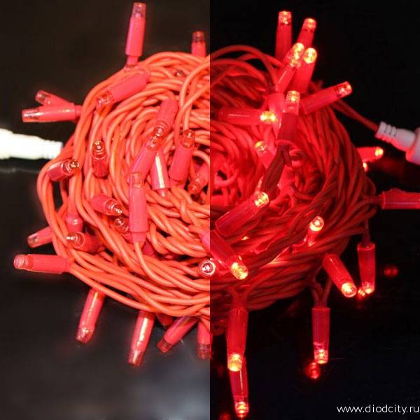 —Светодиодная гирлянда Нить 10 м, 24 В, красный провод , красная