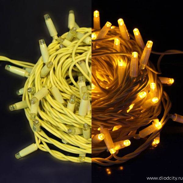—Светодиодная гирлянда Нить 10 м, 24 В, желтый провод , желтая