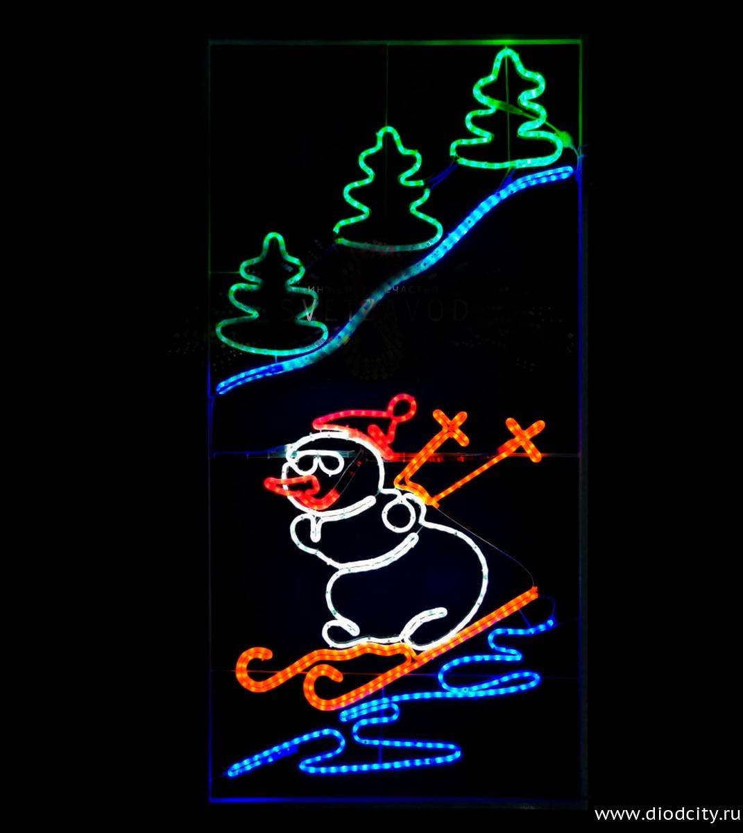 —Светодиодная консоль "Снеговик на лыжах", 200х100 см