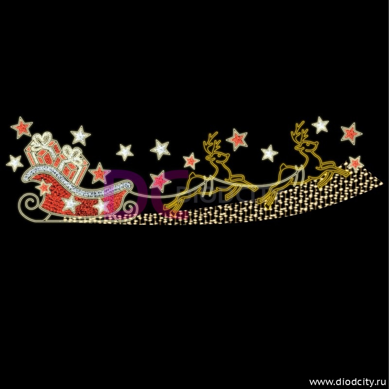 —Светодиодная перетяжка "Сани с подарками" 500х150 см, цвет мульти