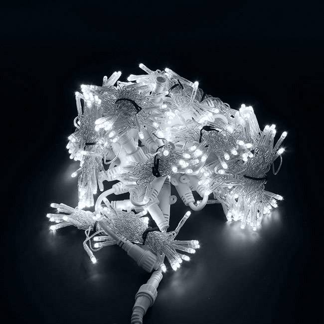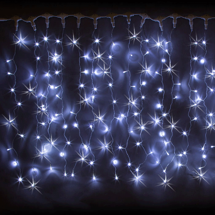 Это элегантное светотехническое устройство послужит украшением для витрин магазинов, фасадов и интерьеров квартир и частных домов. Яркие белые лампочки диодов расположены на гирляндах-нитях, длиной по 1,5 метра.