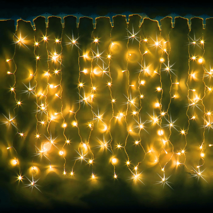 Яркая мерцающая гирлянда светодиодный дождь с желтым свечением, 2*1,5 метра обладает высоким уровнем защиты от влаги IP 44, может применяться как в интерьере, так и снаружи. Ресурс источников света составляет 60 000 часов, а низкий уровень энергопотребления - результат использования LED технологий.