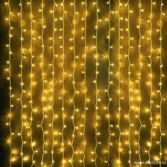 Яркая мерцающая гирлянда светодиодный дождь с желтым свечением, 2*6 метров обладает высоким уровнем защиты от влаги IP 44, может применяться как в интерьере, так и снаружи. Ресурс источников света составляет 60 000 часов, а низкий уровень энергопотребления - результат использования LED технологий.