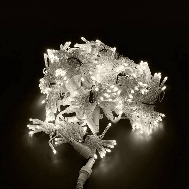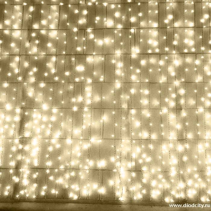 Светодиодная гирлянда «Дождь» с постоянным свечением (фиксинг) ярких теплых белых диодов способна украсить праздничное или торжественное мероприятие любого уровня. Надёжность ПВХ компонентов гирлянды, высокий уровень защиты от повышенной влажности обеспечивают абсолютную работоспособность осветительного устройства, как на улице, так и в интерьере.