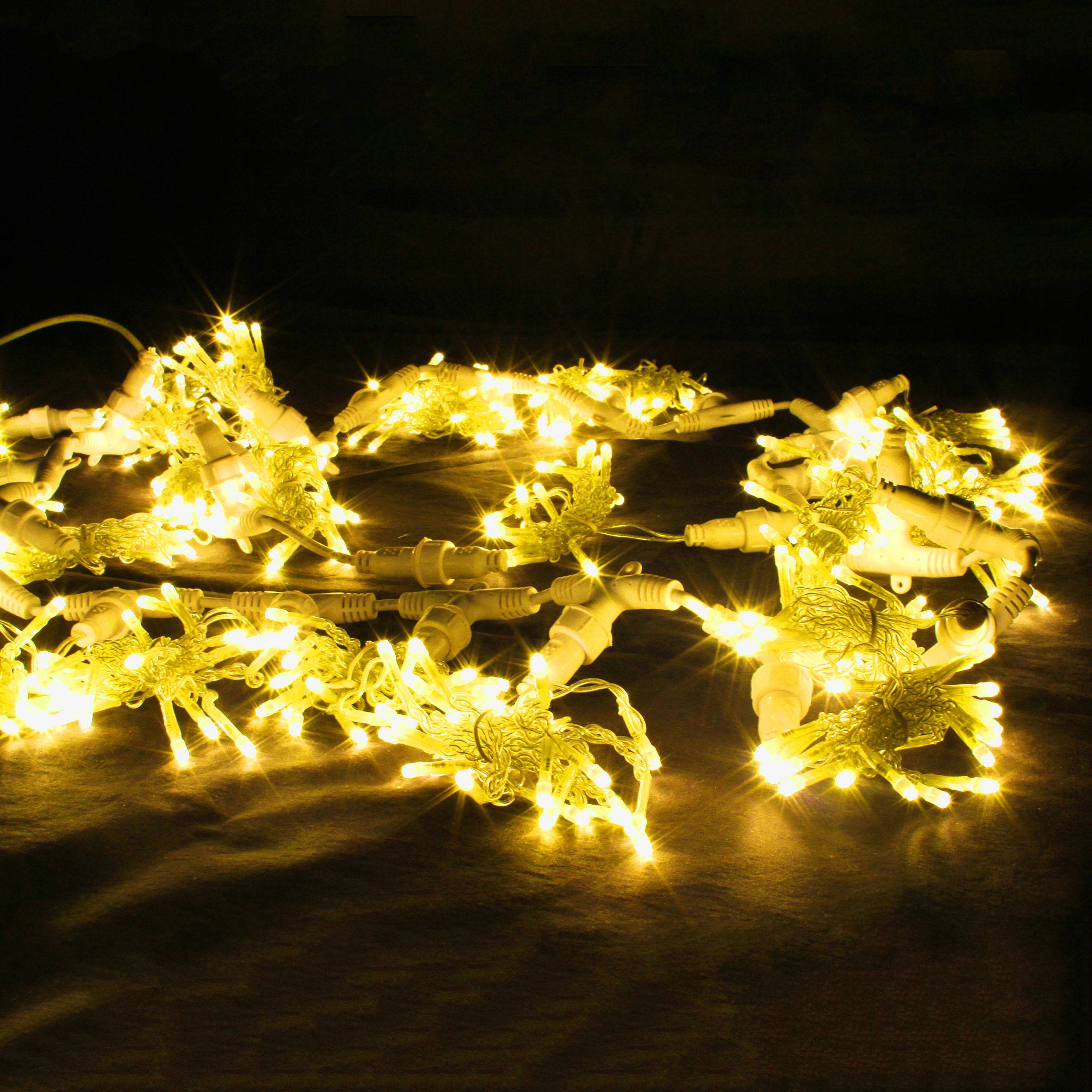 Светодиодная гирлянда «Дождь» с постоянным свечением (фиксинг) яркого желтого цвета способна украсить праздничное или торжественное мероприятие любого уровня. Надёжность ПВХ компонентов гирлянды, высокий уровень защиты от повышенной влажности обеспечивают абсолютную работоспособность осветительного устройства, как на улице, так и в интерьере.