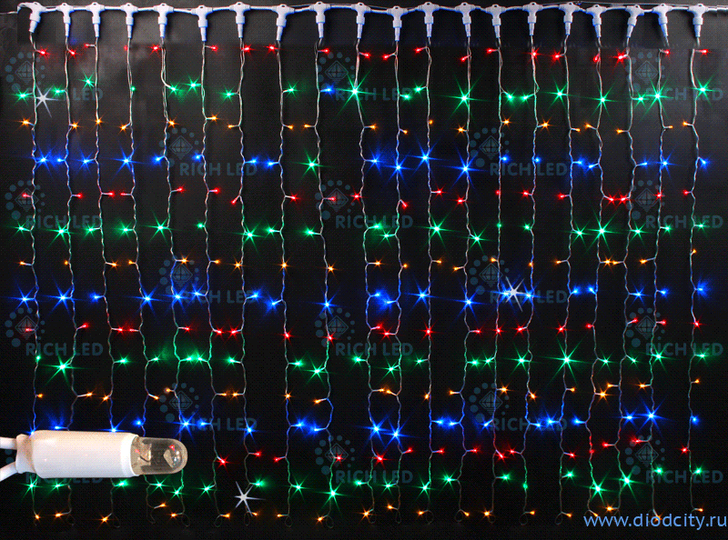 —Светодиодный дождь (занавес) мерцающий 2х6 мульти диоды