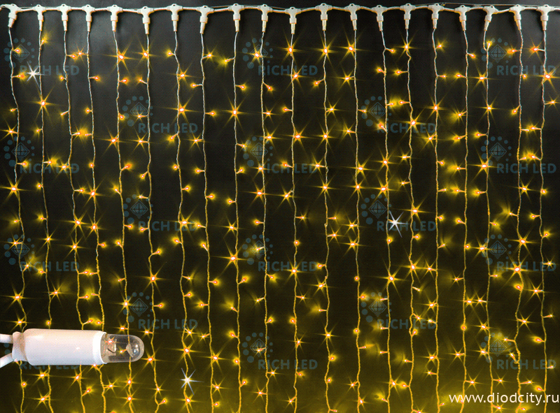 —Светодиодный дождь (занавес) мерцающий 2х6 желтые диоды