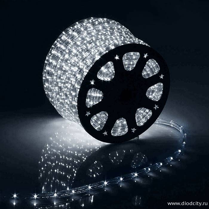 Магазин DiodCity предоставляет лучшие образцы продукции на наиболее выгодных условиях. Приятный для глаз поток белого свечения станет наилучшим решением не только для новогодней, но и каждодневной иллюминации. Дюралайт типа чейзинг работает в нескольких режимах светодинамики (при наличии контроллера).