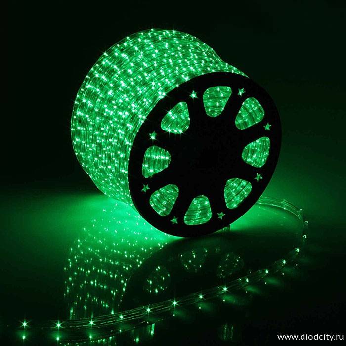 Светодиодный дюралайт чейзинг круглый (16 мм, зеленый, 5 жил), представленный в каталоге магазина DiodCity, обладает цветами высокой контрастности, за счет чего идеально подходит для решения различных задач по художественной иллюминации. Представленный тип дюралайта работает в режимах динамических эффектов при наличии контроллера.