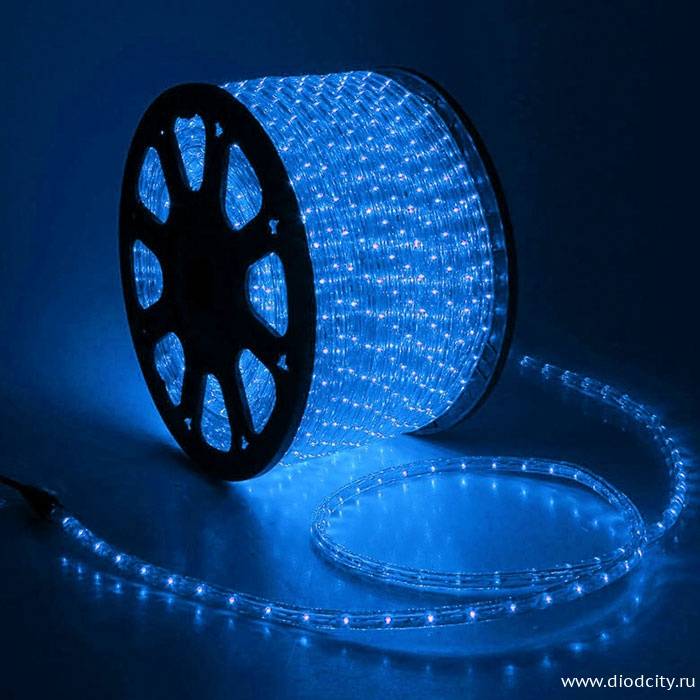 —Светодиодный дюралайт круглый, синий, 12 В