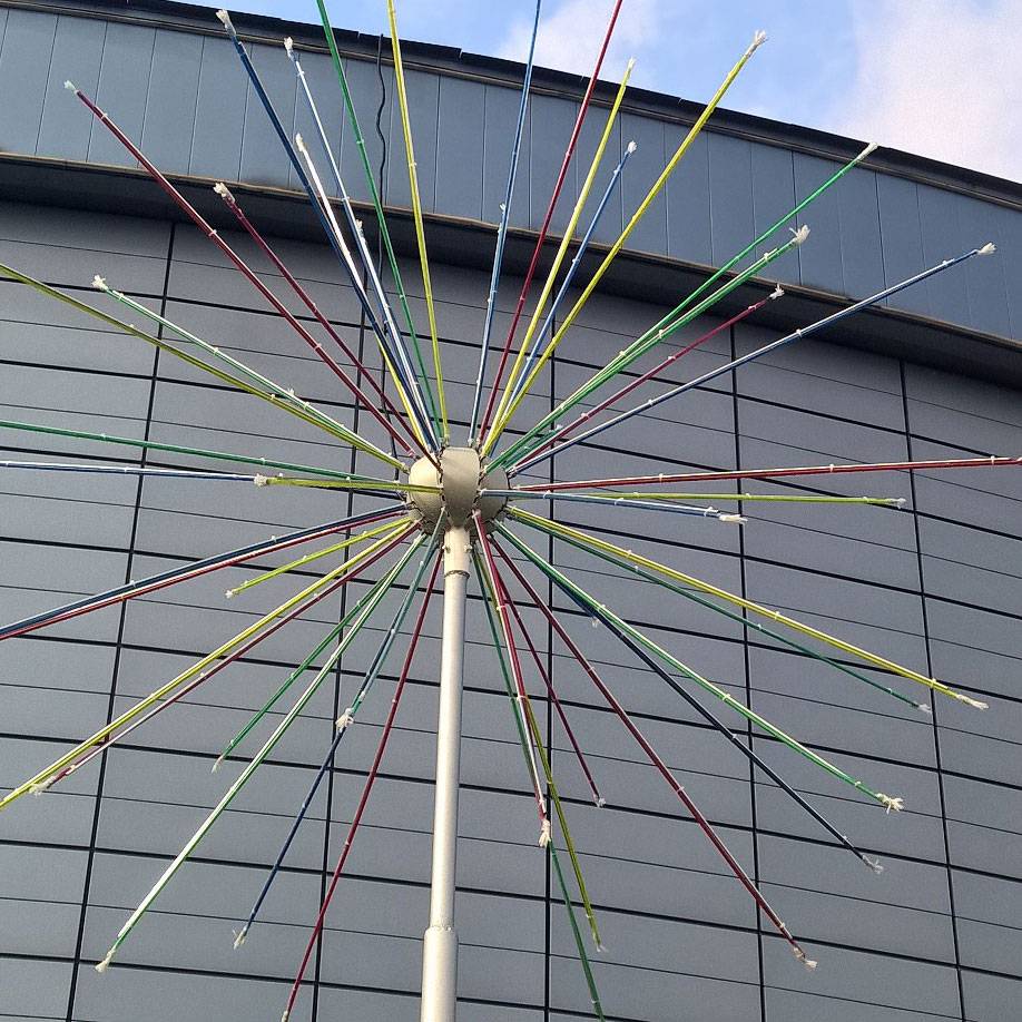 Голова электрофейерверка устанавливается и жестко закрепляется на металлической трубе диаметром от 76мм до 100мм, труба в комплекте не поставляется