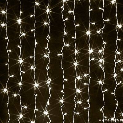 Эффектное световое устройство имеет габариты 2х1,5 метра (горизонтальная шина длиной 2 м с гирляндами нитями 1,5 м), питание получает от бытовой сети 230 В. Декоративная светотехника с рабочим ресурсом 100 000 часов – выгодное предложение от интернет-магазина DIOD CITY, предлагается в самом широком ассортименте, мы доставим гирлянды по Москве и всем регионам РФ.