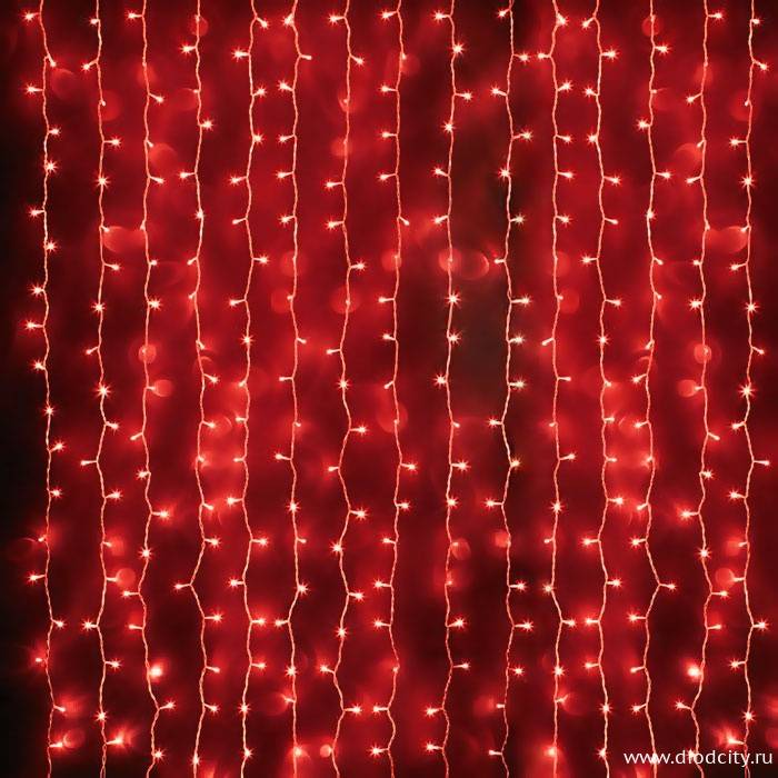 Современный декоративный осветительный прибор – гирлянда «Дождь» с постоянным свечением обладает высокой степенью защиты. Благодаря индексу IP 65 светодиодный занавес с красными диодами можно применять в помещении и на улице: в любых погодных условиях, электропроводка изолирована ПВХ пластикатом.