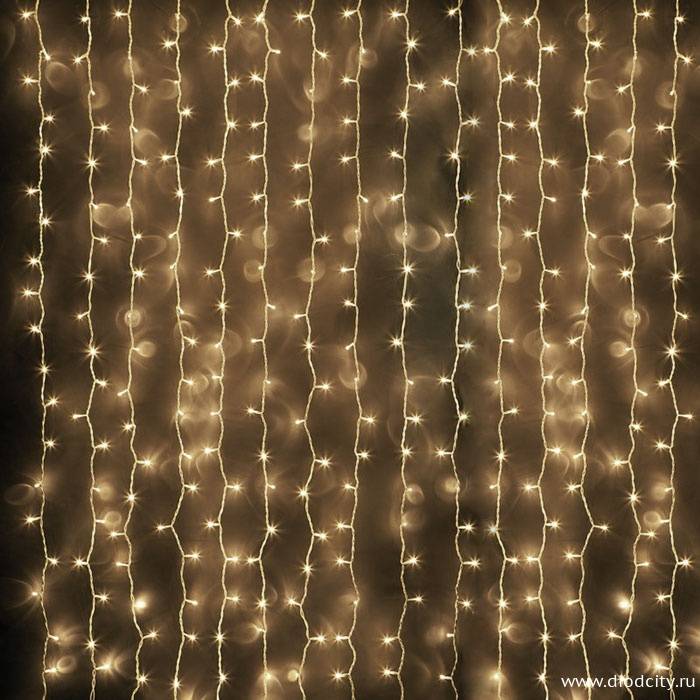 Эффектное световое устройство имеет габариты 2х6 метра (горизонтальная шина длиной 2 м с гирляндами нитями 6 м), питание получает от бытовой сети 230 В. Декоративная светотехника с рабочим ресурсом 100 000 часов – выгодное предложение от интернет-магазина DIOD CITY, предлагается в самом широком ассортименте, мы доставим гирлянды по Москве и всем регионам РФ.