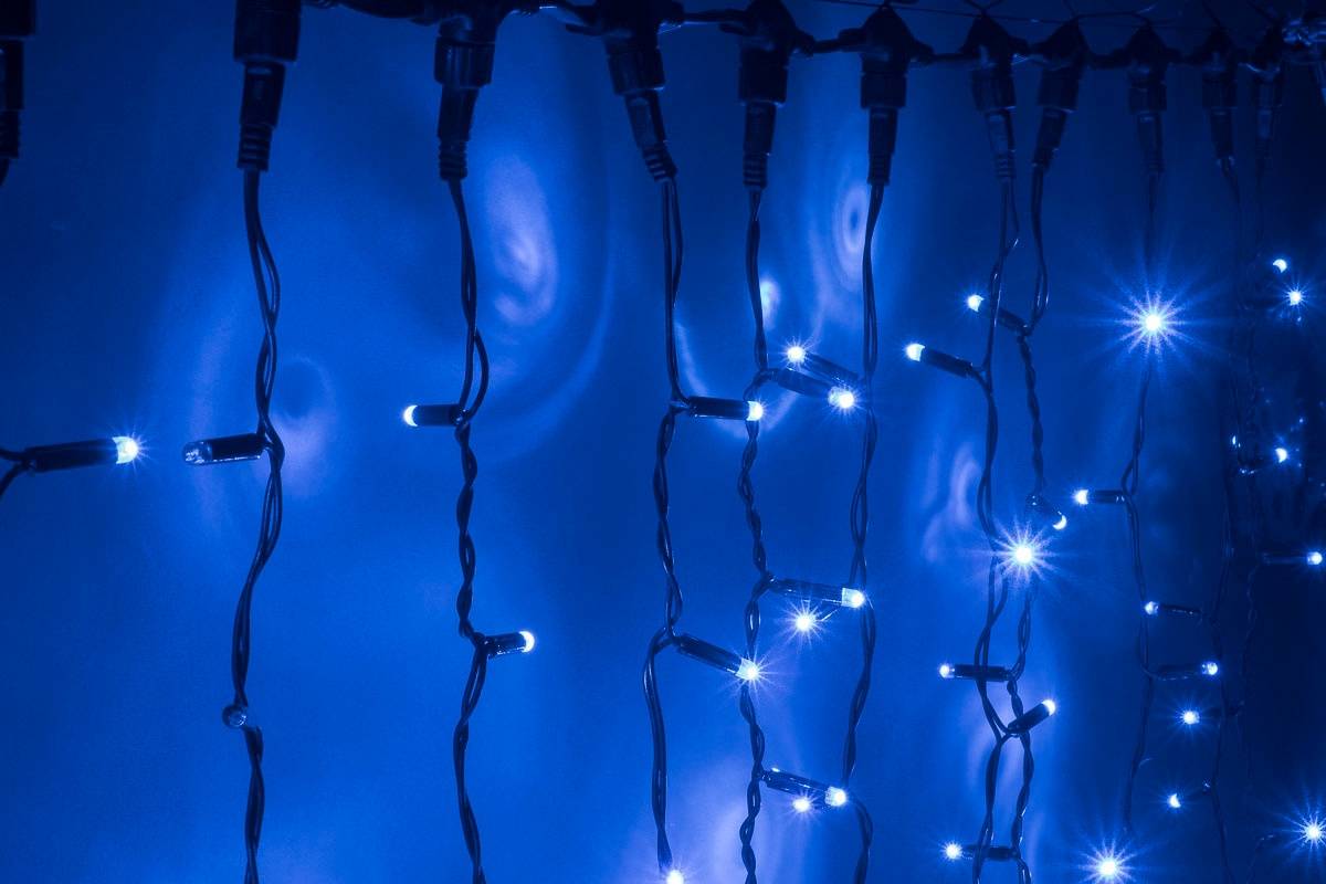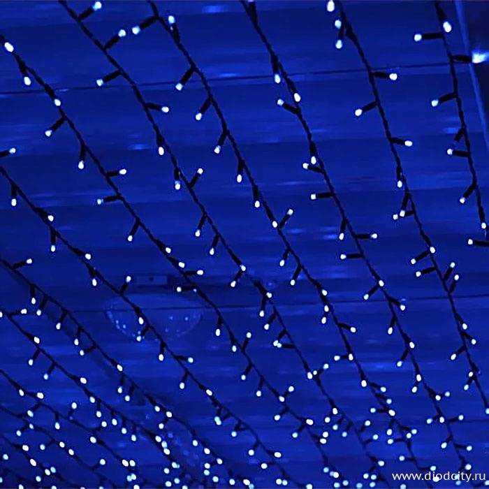 Светодиодное устройство «Мерцающий дождь» обладает всеми достоинствами декоративной светотехники последнего поколения. Гирлянда дождь с 9х метровыми нитями на шине в 2 метра оснащена светодиодами синего свечения, каждый пятый из которых мерцает. Два десятка нитей свисают на 9 метров, обеспечивая большую площадь свечения.
