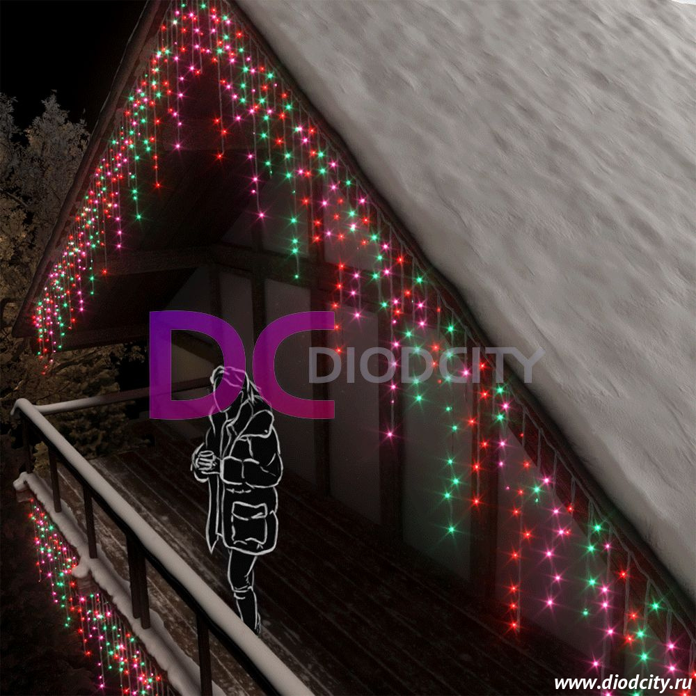 —Световая бахрома 3*0.9 м, герметичный колпачок, мерцающая, мульти IP65