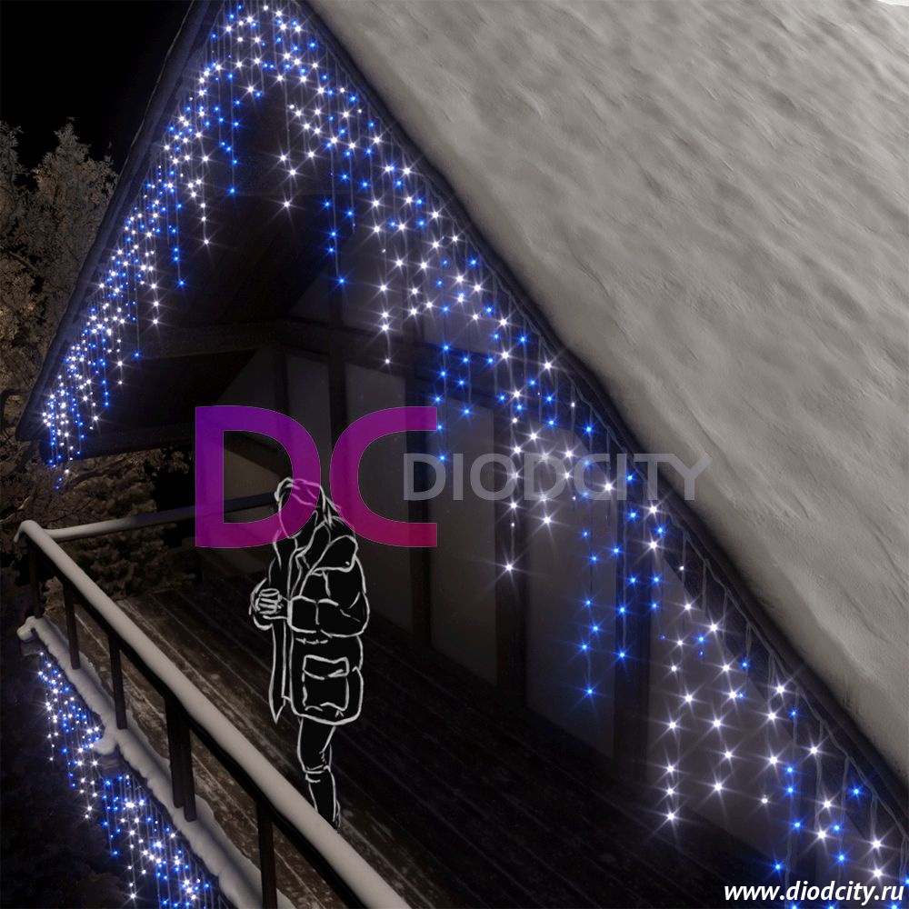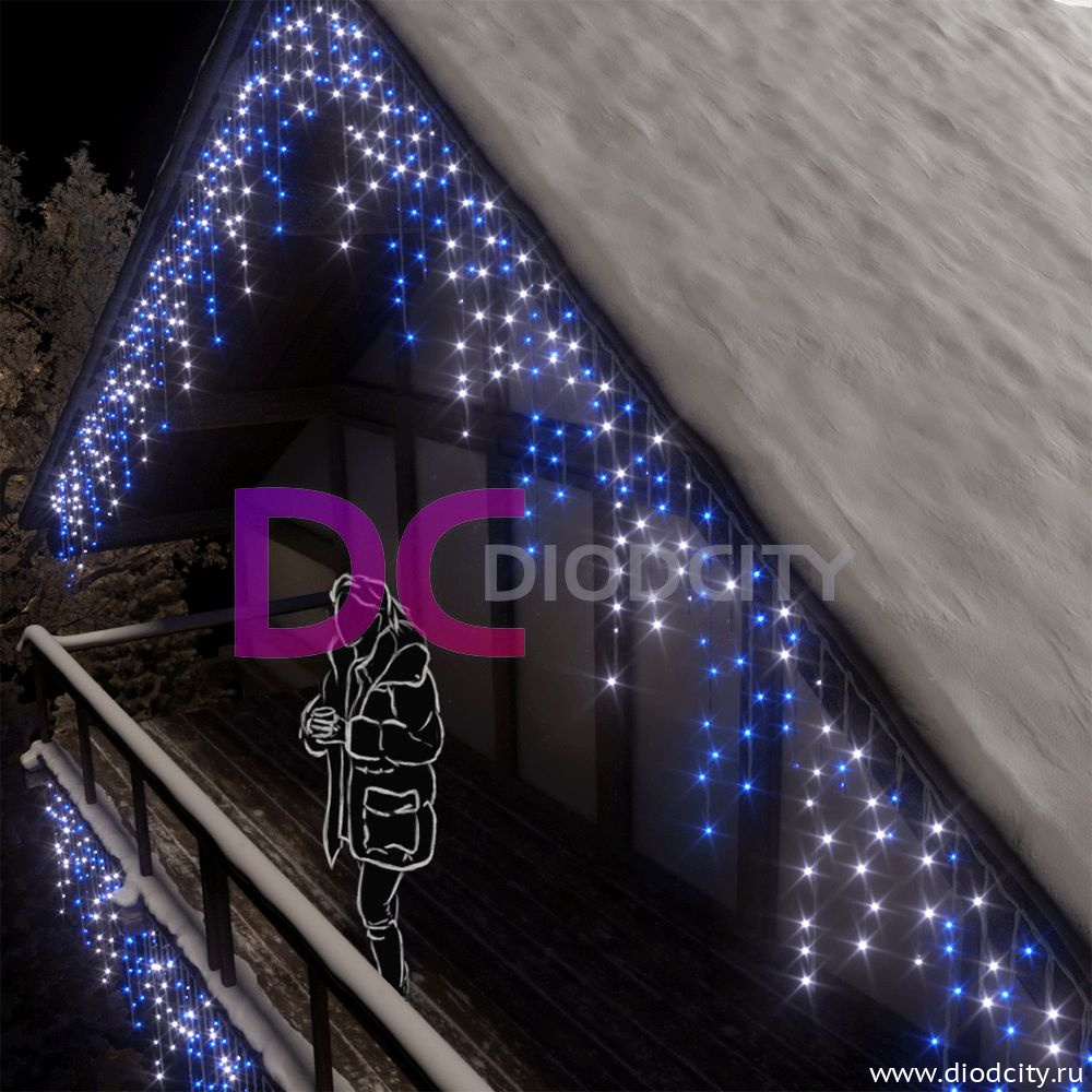 —Световая бахрома 3*0.9 м, герметичный колпачок, мерцающая, синий/белый IP65