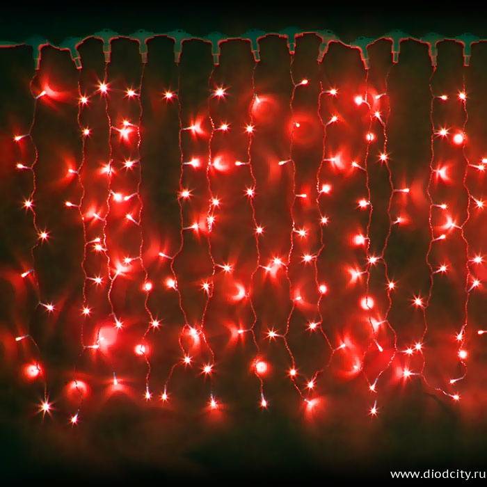 Декоративный световой занавес «Дождь» фиксинг красного цвета – эффектное и надёжное светотехническое устройство постоянного свечения. Уровень защиты IP 65 и провод из каучука позволяют гирлянде функционировать в любых погодных условиях, а красный цвет светодиодов поднимет настроение в праздник и будни.