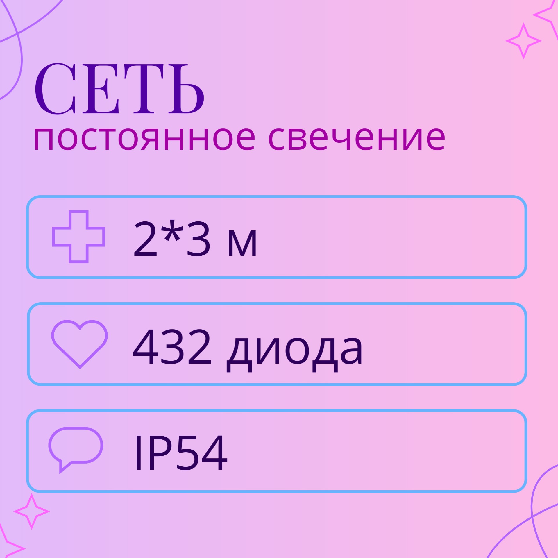 Гирлянда - сеть светодиодная (Нет Лайт)  2 х 3 м, теплая белая
