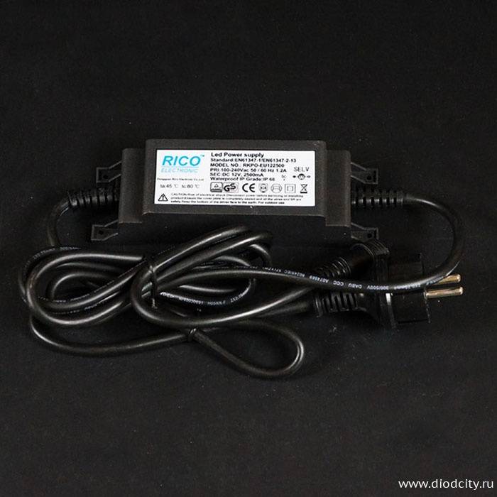 Трансформатор понижающий влагозащищенный, 12В, IP68